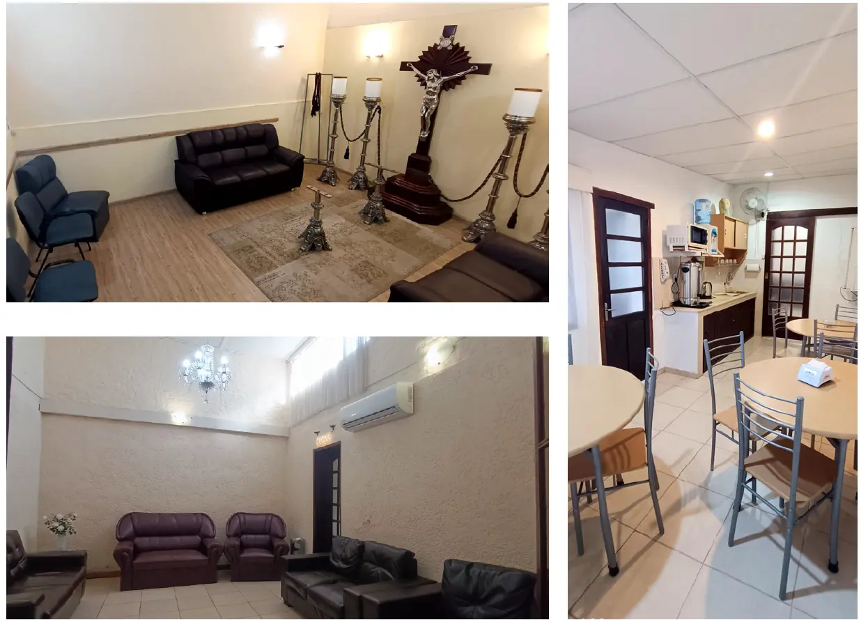 Ofrecemos un espacio acogedor con un amplio recibidor, una cómoda sala velatoria, una cocina completa y baños separados para damas y caballeros También encontrará un patio exterior para momentos de tranquilidad.